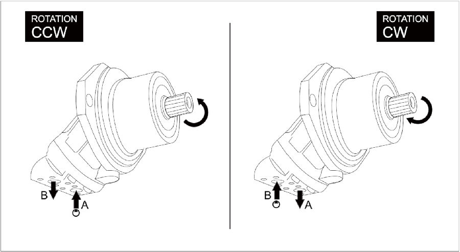 ● 安裝運轉前,馬達必須灌充液壓油排除空氣。